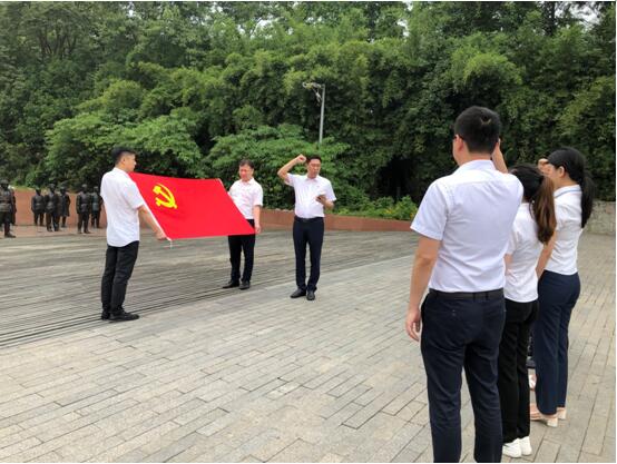 在参观现场,全体党员在壮士广场前面对鲜红的党旗,举起右手庄严宣誓、重温入党誓词。党员们承诺一定牢记党员身份,全心全意为人民服务。