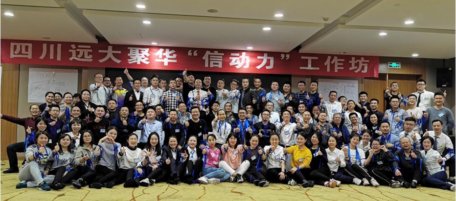 为全面提升集团及各公司团队的领导力、凝聚力、执行力与忠诚度,于2019年12月21日-23日在集团总部举办了“四川远大聚华信动力工作坊”培训会。来自集团本部及各单位总共上百人积极参与,经过1天的访谈、助教选拔定向,2天的培训课程,大家用主动、热情、感动为本次培训工作划上了圆满的句号。