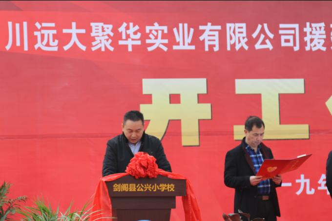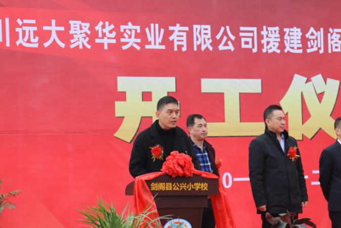 开工仪式上,王晓明代表剑阁县教育局向莅临项目奠基仪式的四川远大聚华集团各位领导及各界嘉宾表示热烈的欢迎,对四川远大聚华集团捐资助学的善举表示衷心的感谢!向四川远大聚华集团援建公兴小学综合楼项目工程的开工建设表示热烈的祝贺。并表示会把四川远大聚华集团的大爱精神融入教育发展。