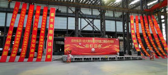 (合金事业部快讯 通讯员 张俊)11月4日下午16时30分,“远大聚华集团•盛世集团——同盛二期合作项目剪彩盛典”在内蒙古丰镇市高科技氟化工业园区同盛二期冶炼车间隆重举行。